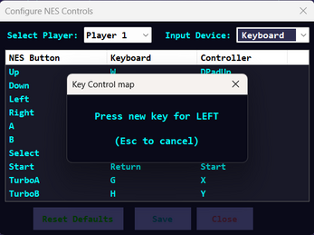 The emulator supports either keyboard or a gamepad. It detects controllers automatically when connected.
